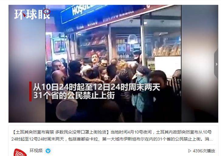 土耳其突然宣布宵禁 多数民众没带口罩上街抢货2020-04-11 09:44:15 微博4月11日讯 当地时间4月10号夜间,土耳其内政部突然宣布从