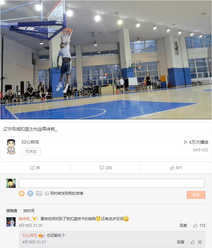 当事人高诗岩对此评论道“看完视频找到了我扣篮技术的缺陷[思考]还有进步空间[吃瓜]”。