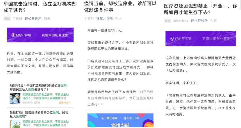对于被迫停业无法开工的诊所,这里有危机应对建议;对于之后陆续准备开业的诊所,这里也会提供开业前准备的指导。在群体遭受质疑时,及时站出来发声,为基层医疗正名。