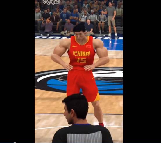 从视频中可以看到,周琦被设计成一个有灭霸身材的球员,罚球时使用NBA名宿巴里的端尿盆式罚球。