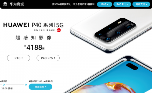 华为中国于近日召开春季新品线元起,官方自营的电商平台--华为商城于发布会后第一时间在4月8日22:80即开启了正式首销。