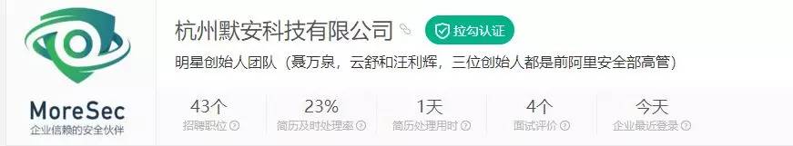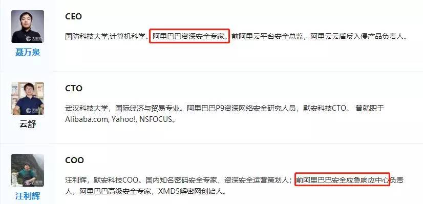 2016年,已经离开阿里的云舒与前阿里云平台总监聂万泉、前阿里巴巴高级安全专家汪利辉共同创业,成立了杭州默安科技有限公司(以下简称“默安科技”)。