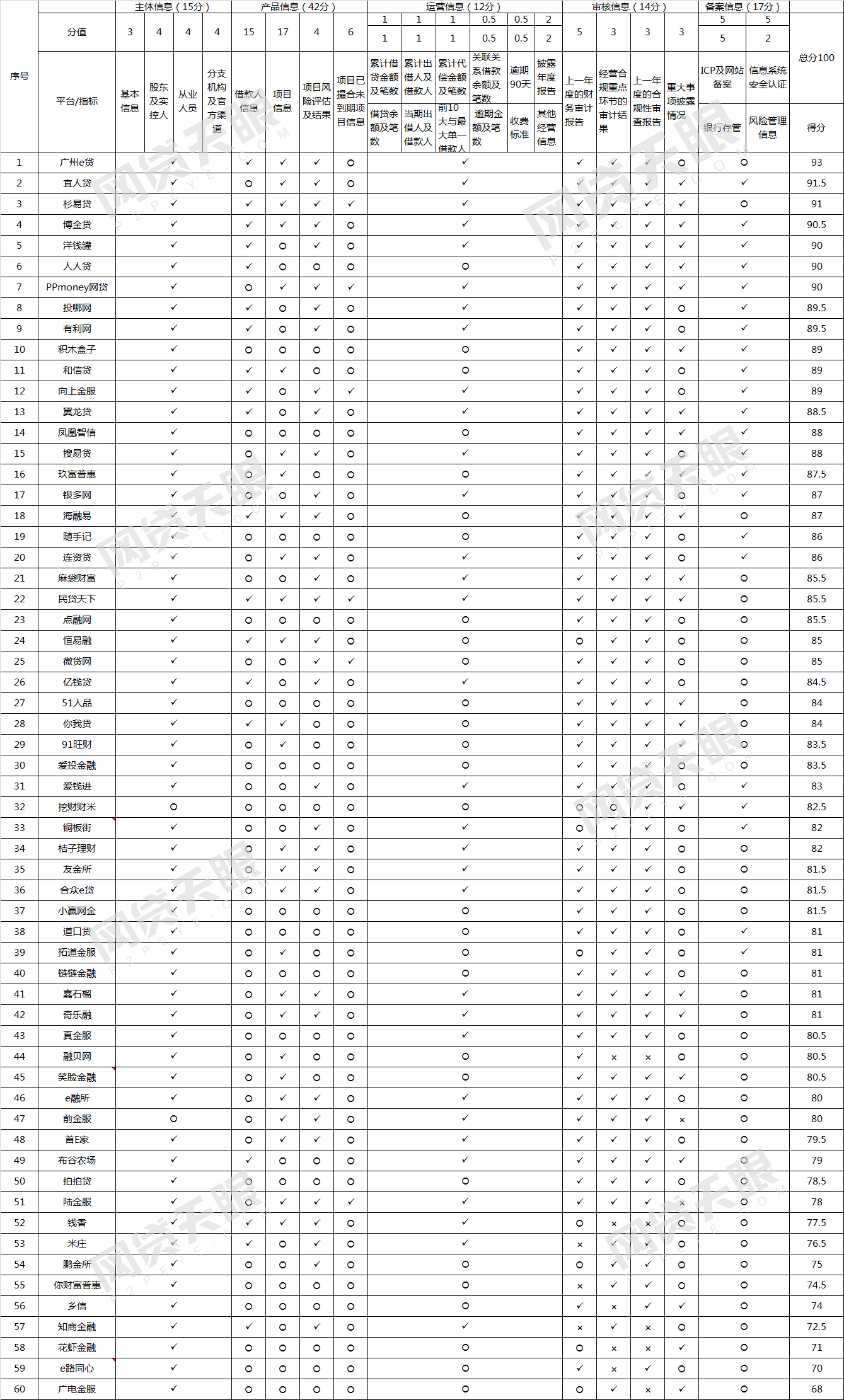 2019年10月18日,网贷天眼研究院发布了《9月60家网贷平台信息披露排行榜》。报告显示:广州e贷、宜人贷、杉易贷、博金贷、洋钱罐、人人贷、PPmoney网贷、投哪网、有利网、积木盒子分别位于信息披露榜单前十。以下为报告全文: