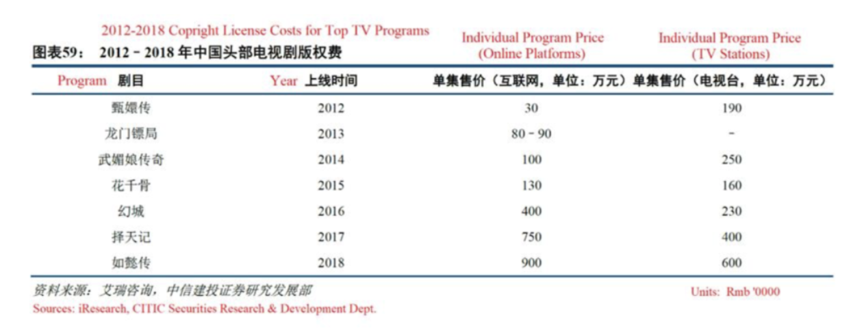 据中国媒体报道,2016年至2018年间,在线平台之间对顶级内容的竞争加剧。这导致一些在线广播许可的售价高达电视台价格的2倍,尤其是流行的“服装和魔术/幻想剧” 类别。但是,爱奇艺支付的费用仍然显得过高。