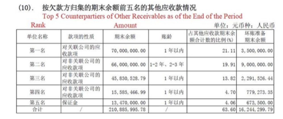 武汉明诚2018年度报告第128页的披露进一步掩盖了爱奇艺的非现金出资主张。武汉明诚的“其他应收款”余额仅为2108.86万元。此外,最大的交易对手仅需支付7,000万元人民币,实在太小了,无法包含爱奇艺声称做出的7.757亿元人民币的非现金承诺: