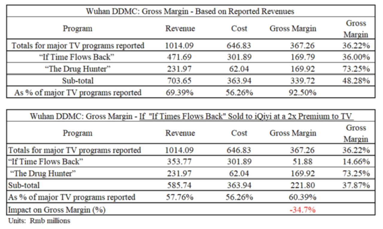 爱奇艺夸大了至少一个它在2018年从武汉当代明诚购买内容的价格。如前所述,当代明诚是爱奇艺体育合资公司(又称为新爱)的合作伙伴的母公司。 爱奇艺过去曾要求其追加虚假递延收益人民币7.775亿元。