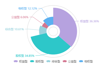 对运营中平台的平台类型进行统计,互联网非公开股权融资型(以下简称“股权型”)平台有23家,权益型平台有24家,物权型平台有8家,综合型平台有7家,公益型平台有4家。