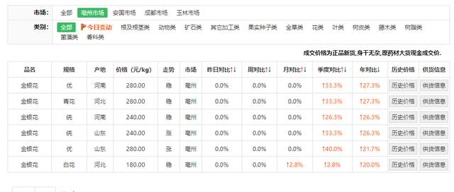 记者查询药通网实时数据显示,在毫州市场,2020年1月1日至3月2日期间,一些具有清热解毒、疏散退热、凉血利咽的中药材批发价,如鱼腥草、金银花、板蓝根、连翘等都出现不同程度上涨。以金银花为例,根据产地不同,最新价格在180元至280元区间(单位:元/kg),山东产区的金银花最高涨40%。