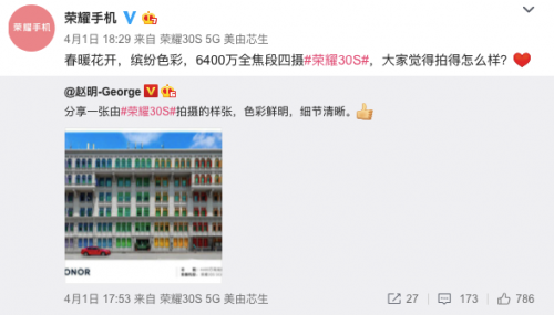 3月底荣耀举行了线上新品发布会,推出了全新荣耀30S 5G手机,首发搭载了麒麟820 5G SoC芯片,性能及AI算力较前代大幅提升,2399元的起售价也让很多人动心。并且于发布会后第一时间在华为商城开启了预订,并有多重预订福利。据华为商城信息,荣耀30S将于4月7日0点正式开售。