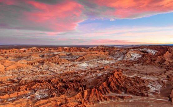 虽然阿塔卡马沙漠的环境比较极端,但也形成了独特的风景。比如戈壁、火山、盐碱地这些别具一格的景观每年都能吸引无数背包客前来观赏体验。最重要的就是因为这里海拔高,云层稀薄,所以晚上的星空特别迷人和闪耀。尽管地理环境极端,但却孕育了这里独特的风景。火山、戈壁、荒漠、盐碱地….这永恒不变的景观形成了令人震撼的景观,每年都有无数背包客前来体验俊美的荒漠景观。此外,阿塔卡玛是全球最佳的天然观星地,因为这里海拔较高、空气干燥,云层稀薄,到了晚上,这里的星空格外晴朗。