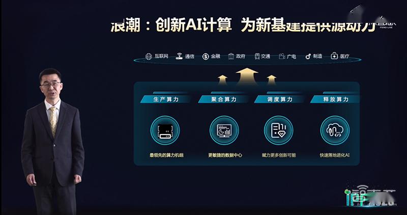 二是聚合算力,浪潮分别在AI训练和推理方面,对TensorFlow框架和高并发推理集群架构等进行优化,进一步提升算力性能;