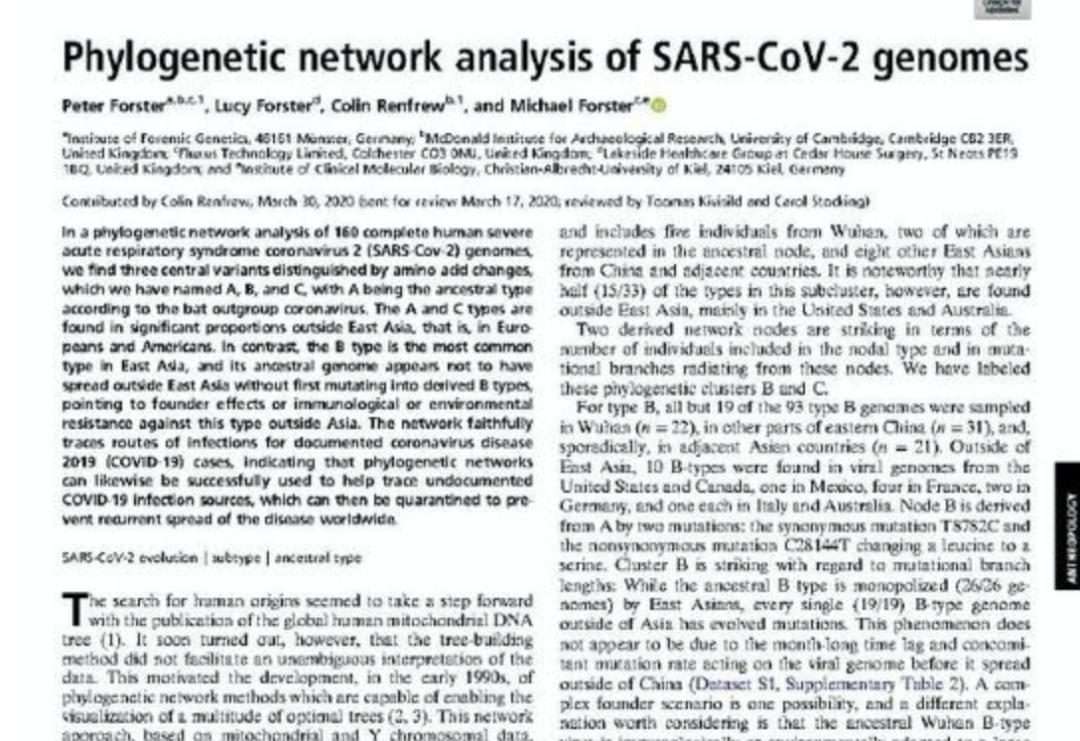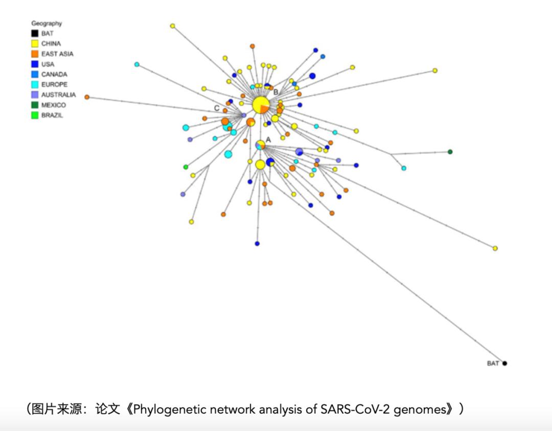 最近,剑桥大学研究人员发表在《美国科学院院刊》(PANS)上一篇针对新冠病毒溯源的研究发现,目前全球感染的新冠病毒实际上并非是同一种,而是变异分化成A、B、C三种类型,并且这三种类型的病毒在全球分布范围不同。