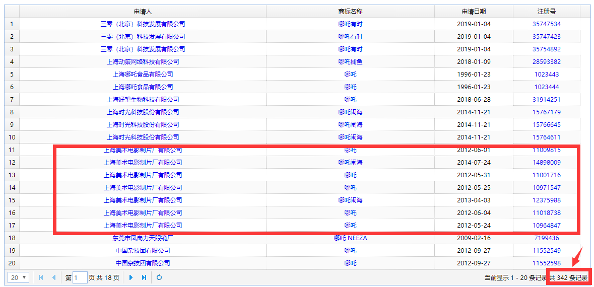 因此如果是光线传媒在《哪吒之魔童降世》这部电影之内,申请了相关知识产权,完全是合理的行为。笔者也查阅了国家知识产权局商标局,“哪吒”、“哪吒闹海”等相关商标一共有342条记录,分别是用于不同的商业用途。
