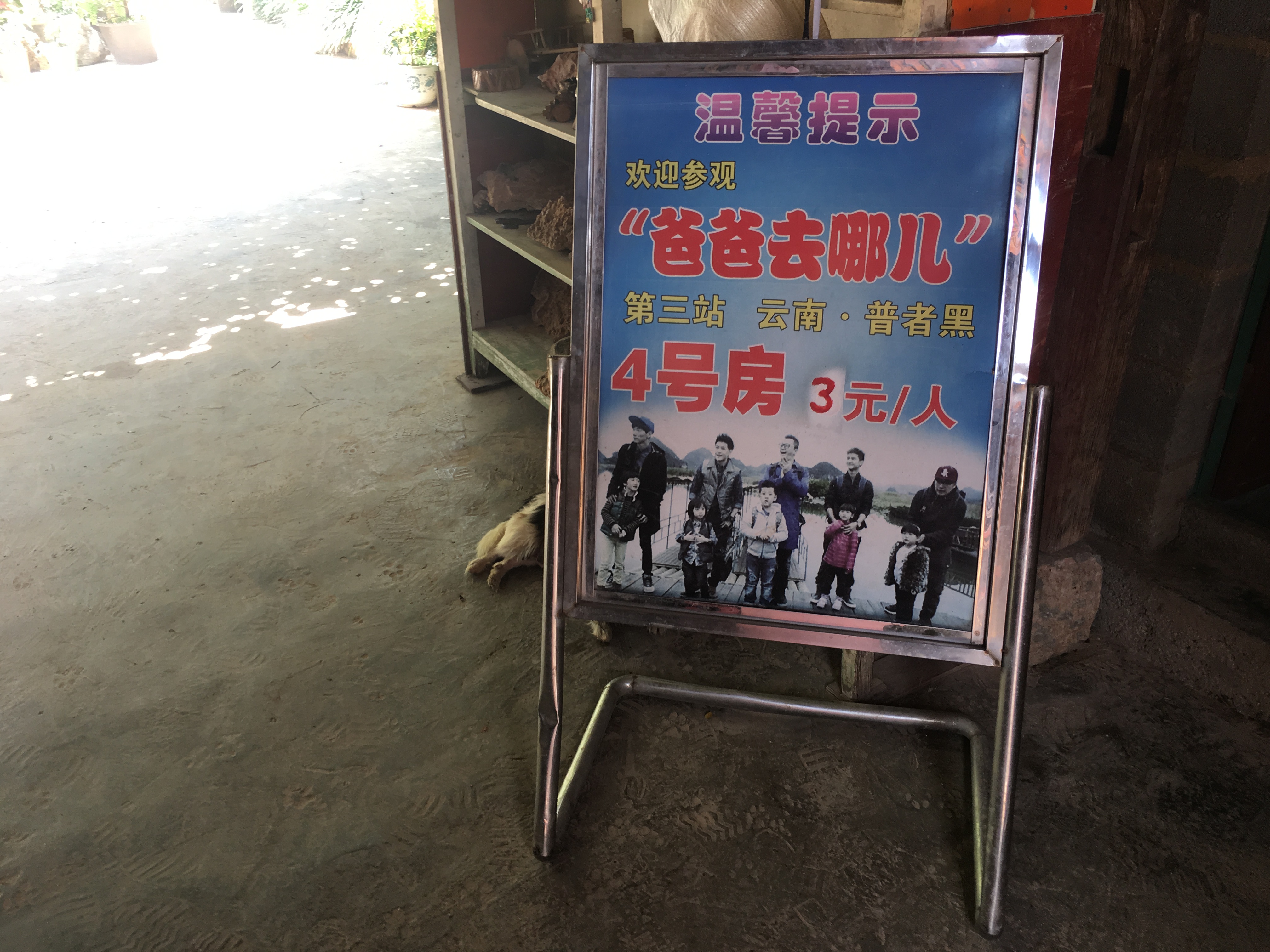 根据村民的指引,记者来到了普者黑村内的一条小巷之中。顺着墙壁上“爸爸去哪儿x号房”的指引,就可以找到准确地点。