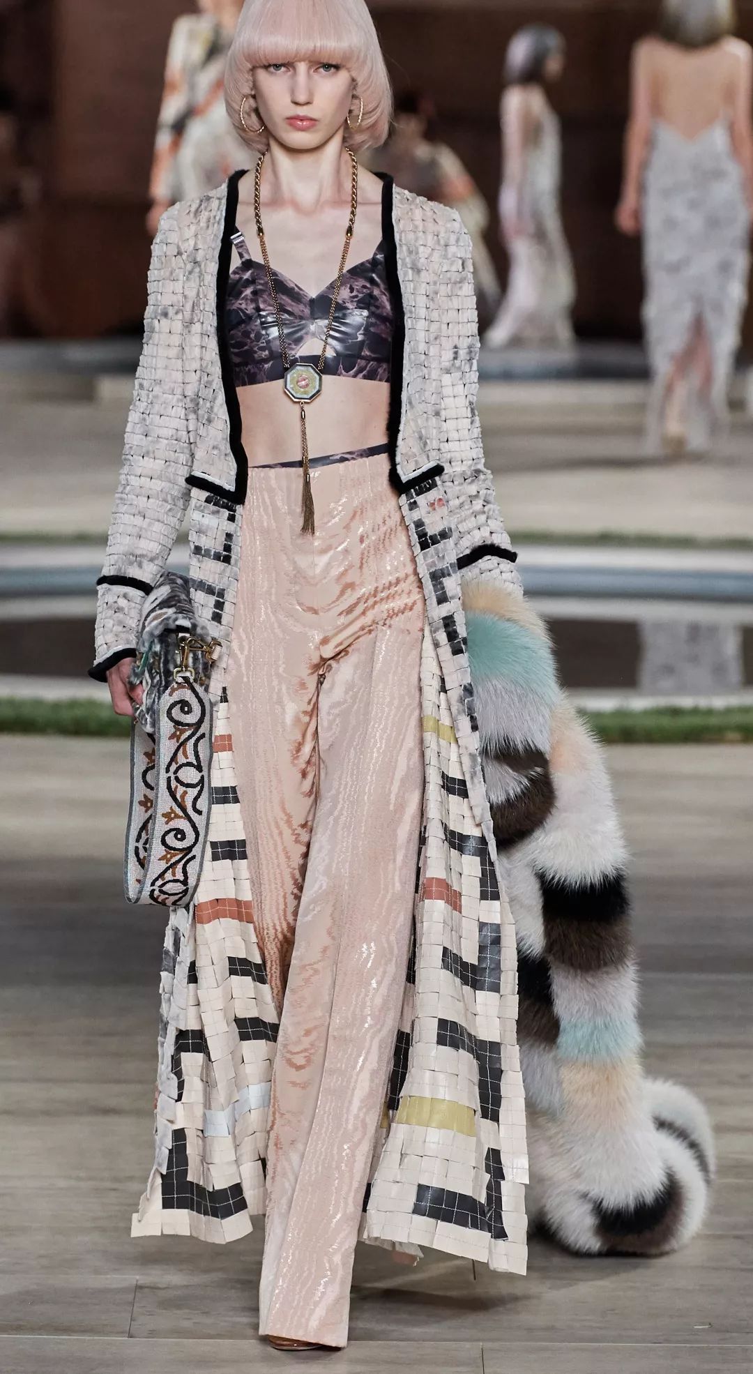 欣赏完这场气势磅礴、细节处又见精湛完美的高定走秀,忽然想到了英国诗人西格里夫·萨松《于我,过去,现在以及未来 》中的诗句——心有猛虎、细嗅蔷薇。以皮草加工起家的FENDI品牌,在家族三代人的传承下,一直不失改变和突破的勇气,同时在皮草手工工艺上,又始终追求细腻完美,正是这种勇气与匠心的结合,才能使品牌在“过去,现在及未来”始终保持旺盛的生命力和创造力。