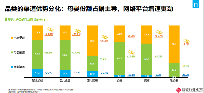 近两年对于纸尿裤行业来说,除了“战争”不断升级之外,纸尿裤的渠道转变也较大。在线下渠道中,纸尿裤在一些母婴门店不再是第二大品类,逐渐被辅食、棉品等取代,一些母婴门店主更是深有体会,纸尿裤不再是门店的引流利器。