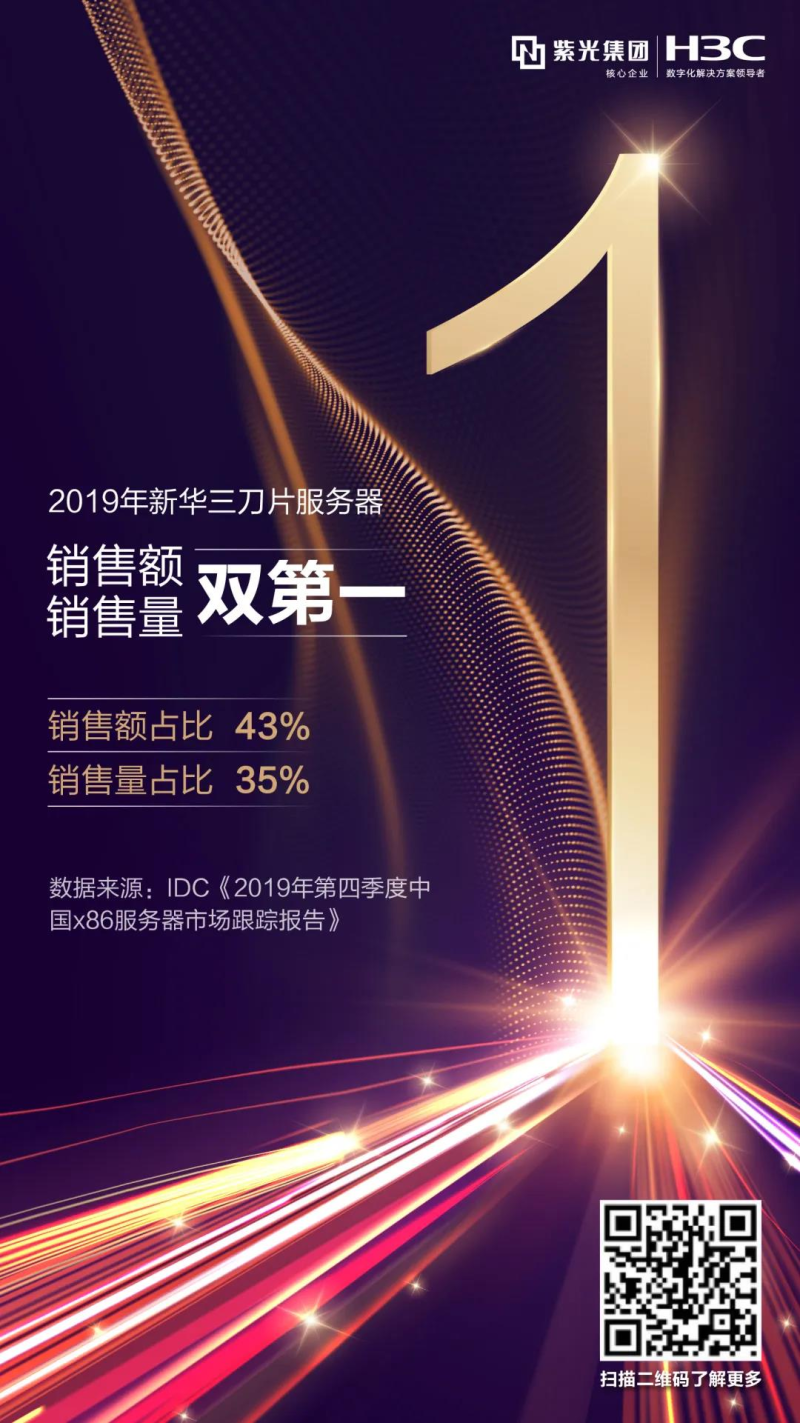 凭借敏捷、智能、高可靠的优势,2019年新华三集团刀片服务器已连续四季度获得市场份额第一,成为百行百业客户在数字化转型中的坚强“基石”。未来,新华三集团将继续以“数字大脑计划”为引领,不断提升服务器产品创新与布局,并积极结合创新技术应用和场景化需求来加速产品和解决方案的研发与迭代,乘着“新基建”的东风砥砺前行,迎接智慧计算的新时代。