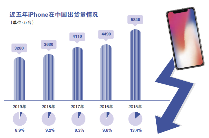 中国信通院发布的数据显示,2月国内手机市场总体出货量638.4万部,其中只有49万部是iPhone,这比苹果手机去年同期的出货量下降了60%。
