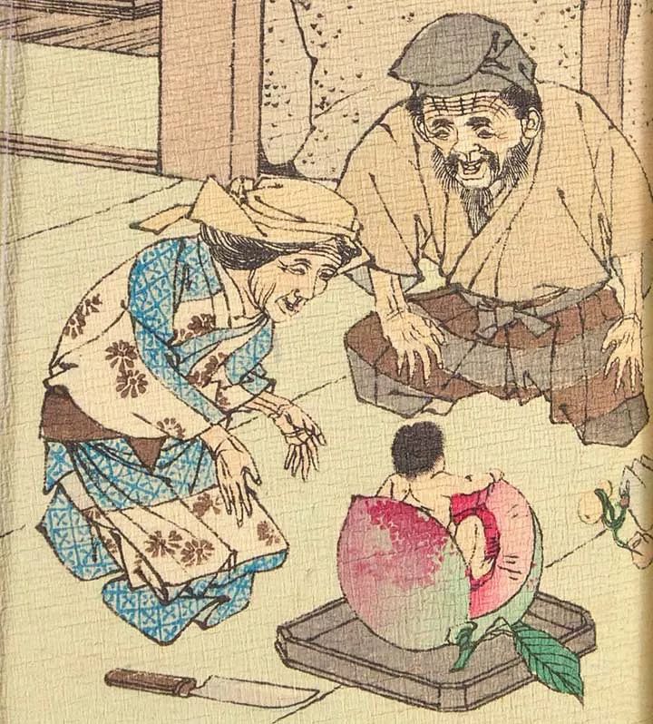 此系列的第一本书《桃太郎》讲述了流传几个世纪之久的桃太郎的故事。有一天,一对老夫妇在河边发现了一个大桃子。他们把它带回家打开,惊讶地发现里面有个小男孩。这便是桃太郎,老夫妇把他养大,他随后离开家,开始了一系列冒险,归来时已经是当地的英雄人物。