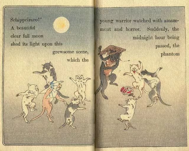 《画猫的男孩》由小泉八云改编(译者注:小泉八云原名拉夫卡迪奥·赫恩,出生于希腊,1896年归化日本,改名小泉八云,是一位日本小说家),讲述了一个爱做白日梦的男孩在寺院墙上画的猫神奇地打败了老鼠妖怪的故事。在传统版本里,那个男孩后来成为了虔诚的僧侣。在赫恩的版本里,他成为了著名的艺术家。