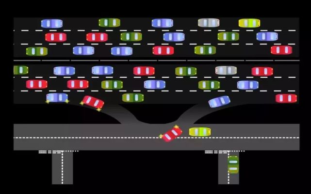 入口设置在后面,让进入高速路的车子从这里进去,也就是把它们原先的位置调换了一下,把蝴蝶振翅的问题放到外面去,放到这条对速度要求不高的慢速路上,以保证主线的通行。