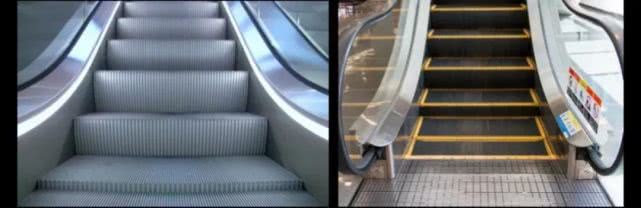 路面标线的油漆质量太差。油漆差怎么会导致十个小时的拥堵呢?驾驶员开在这条路上,他看不清车道啊,也看不清旁边的人是不是开在对的车道,他没办法对自己定位。一旦没办法对自己定位会发生什么?就会怀疑自己:我在哪里?我要去哪里?我究竟要干什么?发生各种各样的疑问之后,就会在这边开开停停。所以一桶油漆引发了十个小时的拥堵。很多问题都只是因为缺了一桶油漆。这个电梯可能大家一眼就看得出来,左边没有油漆,右边有油漆(图35)。左边没有黄色的标线,眼神不好的老年人会不知道具体踩在哪儿,担心踩在台阶的边缘可能会摔一跤。这也是一桶油漆的问题。