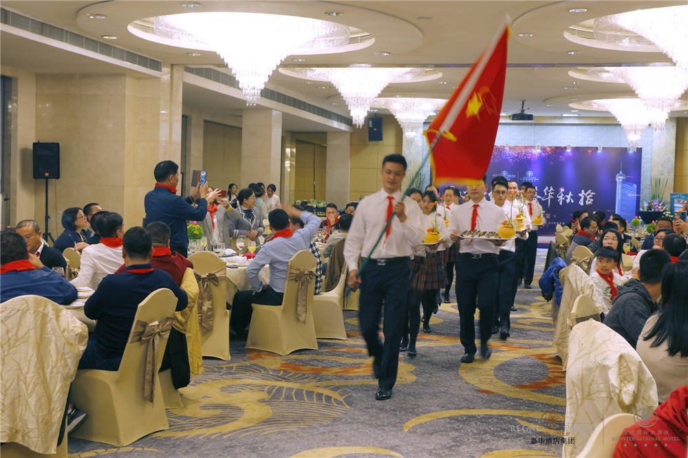 本次活动秉承传统,选用中餐围餐的形式进行,晚宴出品精致,选材及味道都十分出彩。晚会播放了厚街国际大酒店十周年发展历程视频及来自世界各地的国际“嘉”人的祝贺短片。紧接着是酒店十周年主题朗诵表演,由酒店十年员工丁江杰亲笔撰文,并与酒店员工杰出代表一同进行了深情朗读,赢得了全场最热烈的掌声!诗篇里的一字一句都述说着员工对厚街国际大酒店的深厚情义,亦表达了身为厚街国际“嘉”人们的精神寄托及无限期望!