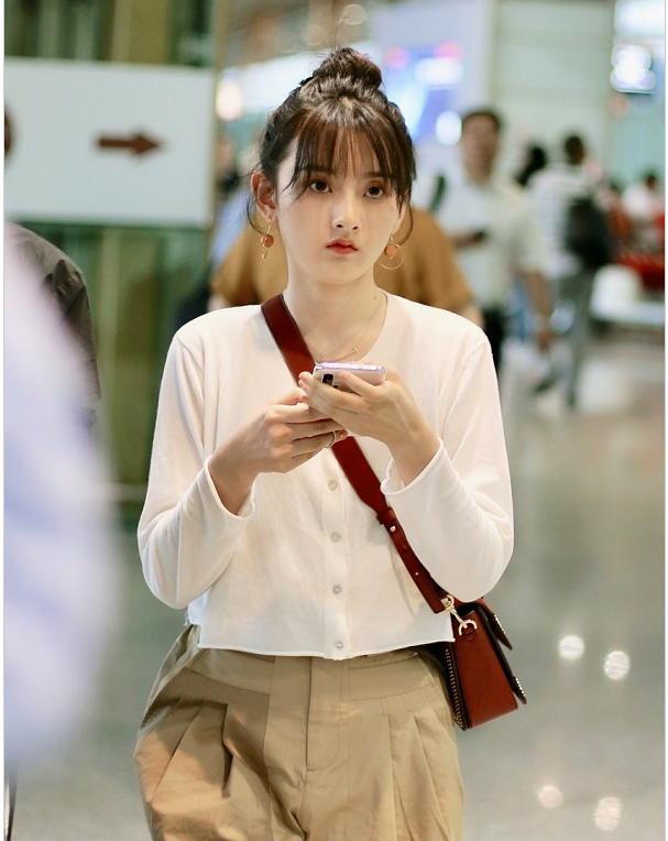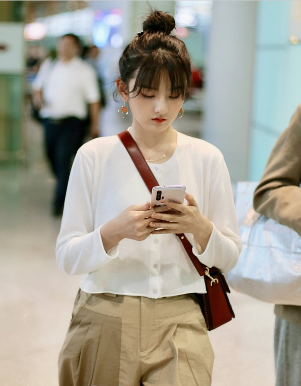 2019年9月18日,宋祖儿现身机场,她身穿白色针织衫上衣搭配拼色裤搭露趾拖鞋,扎起丸子头,率性不失灵气,宋祖儿留着一个空气刘海,其次,在此基础上,宋祖儿还给自己扎了个丸子头,这么一款发型把宋祖儿的少女感衬托出来了。