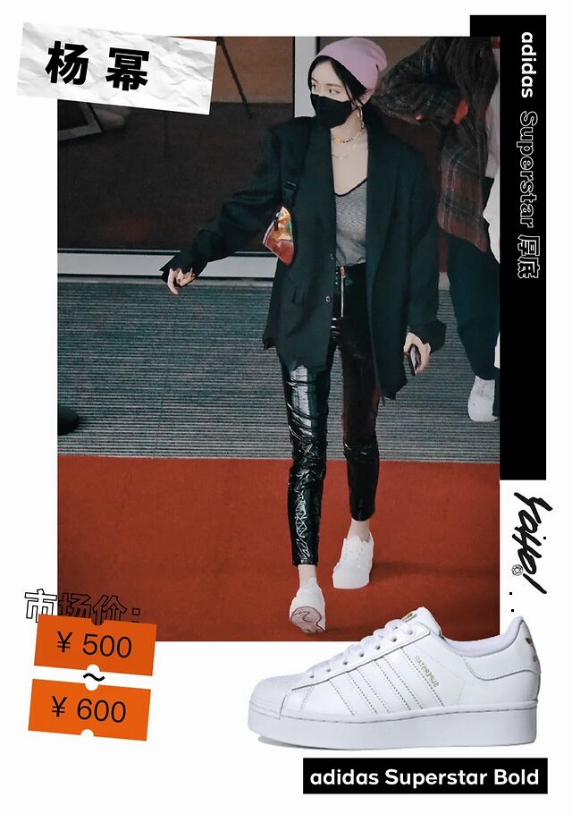 知名演员杨幂最近上脚了一双纯白 Superstar Bold,经典的贝壳头鞋型加上全新「厚底」设计,相信不少女生都会喜欢。