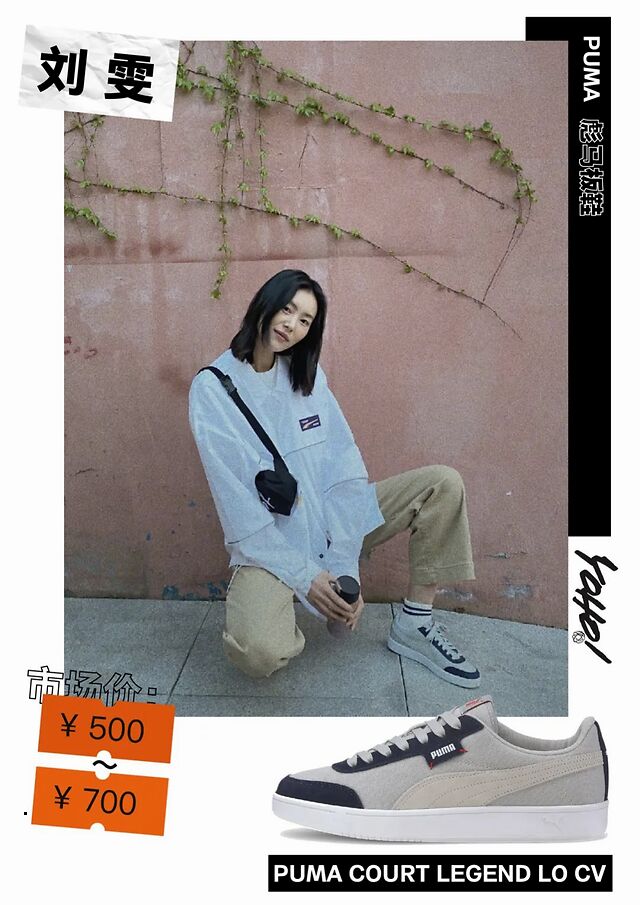 「大表姐」刘雯依旧上脚 PUMA,此番选择的是一双平价的 COURT LEGEND LO CV,灰蓝的配色非常复古休闲,对于日常穿着也十分百搭。