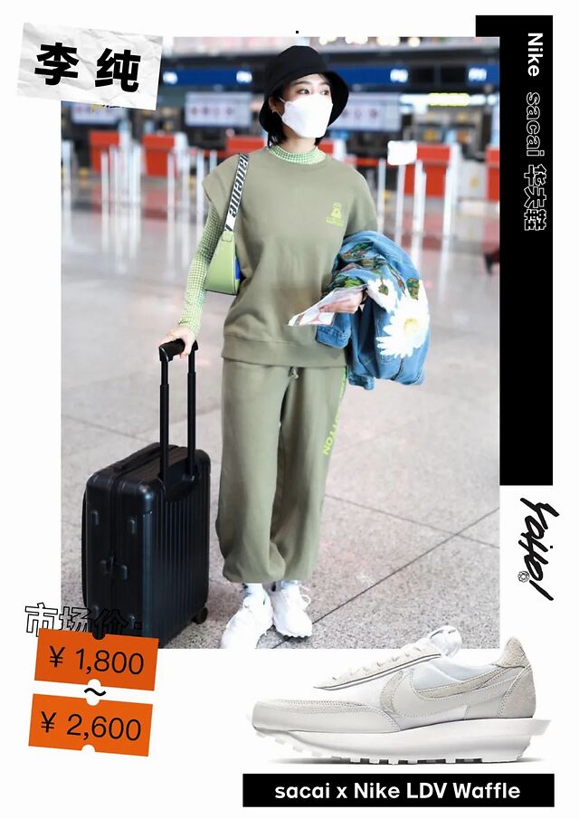 演员李纯最近则上脚了 sacai x Nike LDV Waffle 最新的纯白配色,「双层结构」的设计依旧是该鞋款最为亮眼的地方,目前两款新配色价格都不错,想要入手的朋友不要错过了。