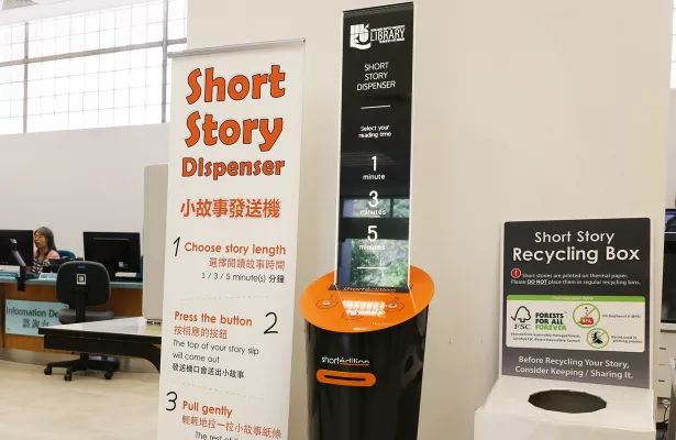 机器上的三个按钮分别代表阅读时间“1 分钟”、“3 分钟”和“5 分钟”,人们可以根据自己的通勤时间来选择,并取出相应篇幅的故事——它们被印在环保纸张上,不收取任何费用。在这些机器的“出票口”上方,印着法国出版公司 Short Édition 的标识,它也是这批故事发送机的开发者。