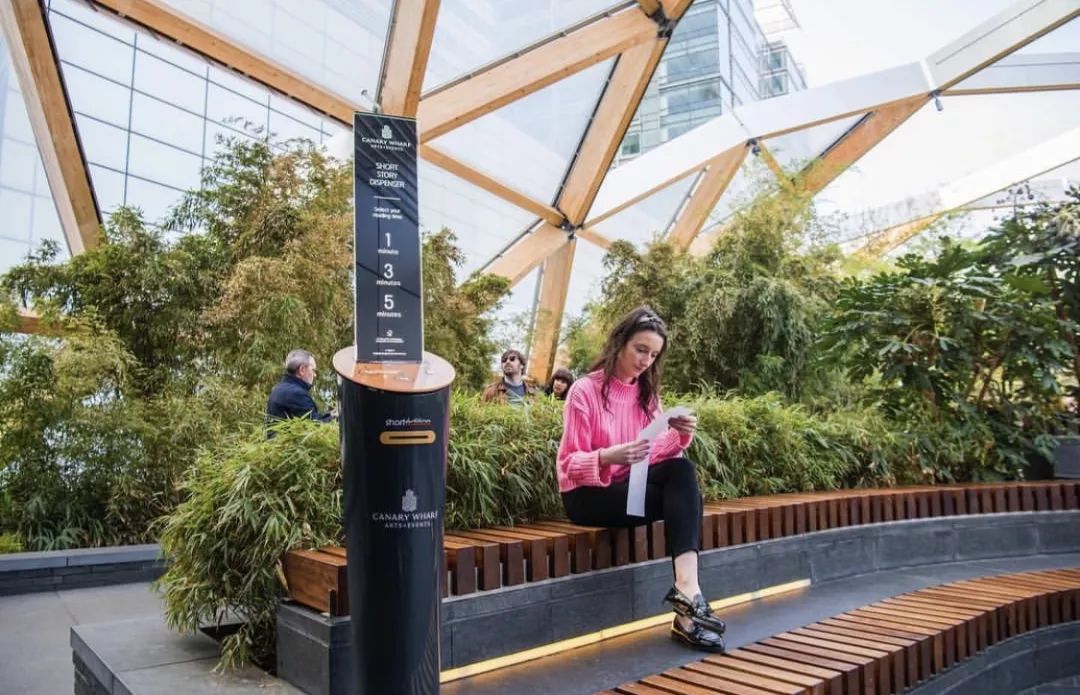 连接多条重要地铁线路的金丝雀码头,是英国伦敦重要的金融区之一。今年 4 月,一批每台只有指示牌、3 枚按钮和 1 个“出票口”的自动分拣机,出现在这个人流量众多的地段。行人摁下按钮后,即可收获一张收据大小的短篇故事,以消遣无聊的通勤时光。
