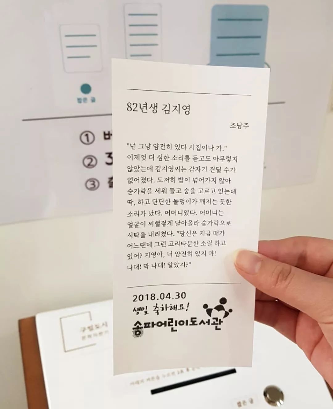 △韩国 Song Park 儿童图书馆里的发送机,将“收据故事”的形式与儿童文学短小、易读的特点结合在一起。图片来源 @spclib(instagram)