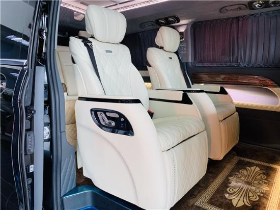 奔驰威霆改装高顶7座,奔驰威霆改装商务车车厢座椅选用了2+2+3的形式,奔驰威霆改装商务车座椅规划得宽大舒适。奔驰威霆改装高顶无间隔7座商务车后排排两个独立,并带脚托、座椅回忆,电动升降头枕、座椅通 风加热功用,享受可谓“头等舱”等级,规划无微不至。