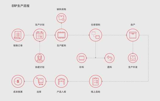 仁和 ERP作为首家硬软件结合的企业管理软件,专注于生产制造业,从生产流程,产品BOM的自动核算,工序流程、仓库管理、销售管理、采购管理等多种功能全面建设公司标准流程体系: