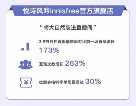 1月9日,Innisfree的公众号上发布了首次小程序直播的预约码,截止目前,品牌共完成了9场直播,2月26号-3月8日小程序商城销售近2000万。