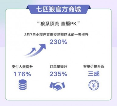 在后续的专项对接中,用户增长团队帮助七匹狼在全员营期间梳理了业绩分配逻辑以及门店、总仓库存共享逻辑,优化直播过程中的触点链路。在最近的一次直播中,小程序直播拉动交易额环比前一天提升230%,客单价提升了近3成。