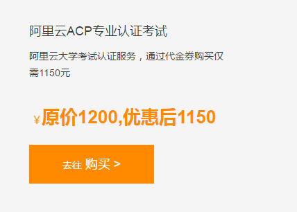 阿里云ACP认证通过网上报名,每次考试报名费用均为1200元。现在使用阿里云ACP认证报名费代金券可以减免50元,仅需1150元。
