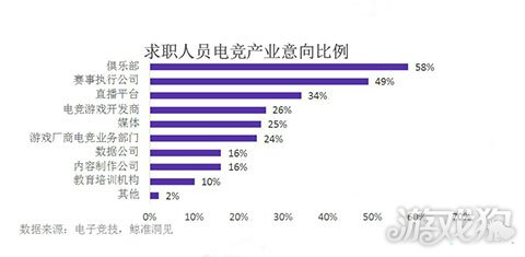 从供需两个方面看,在供应层面,目前市场上近半数对电竞感兴趣的人希望从事的电竞机构为俱乐部和赛事执行公司,这是因为赛事和俱乐部是电竞赛事产业链的核心。