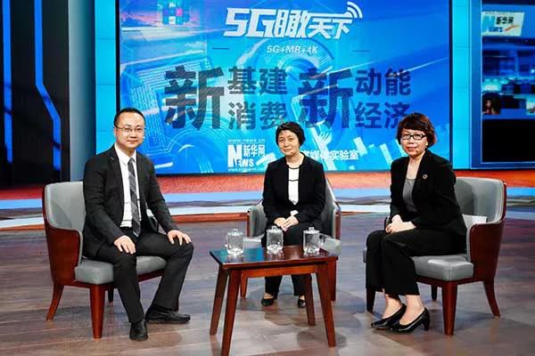 中国信息通信研究院副院长、IMT-2020推进组组长、5G应用产业方阵秘书长王志勤(中)、全球移动通信系统协会大中华区创新与生态合作总经理常洁(右)做客全球5G产业高端交流协作平台《5G瞰天下》