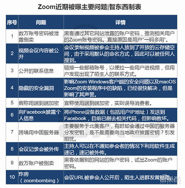 Zoom的安全问题究竟是“人红是非多”还是里子出了问题?这些问题是Zoom的特殊问题还是行业的普遍担忧?我们将Zoo近期爆出的问题梳理如下: