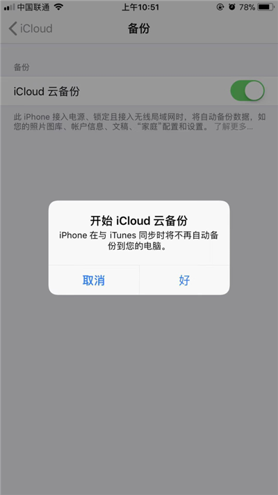 将您的设备连网,建议选择可靠稳定的Wi-Fi环境。打开【设置】,点击【iCloud】,打开【iCloud 云备份】功能即可进行备份。