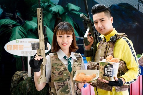 2018年8月31日,德克士和全球热门手游《绝地求生:刺激战场》联合推出的“吃鸡兄弟连”活动正式开启。在占地近500平米的天津主题旗舰店,德克士首席运营官崔凯军表示:“德克士很高兴和‘吃鸡’擦出火花。德克士在2018年发力抢人、抢店、抢未来,突破竞争快速发展,成为近三年来增速最快的一年。”