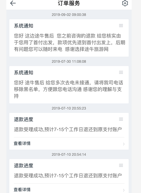另一位安徽的黄女士也对中国网科技描述了自己的类似遭遇。她在今年7月7日通过途牛订购7月8日出发的厦门游,总价为3601元,当天下午她因故取消订单,也损失两千多元。