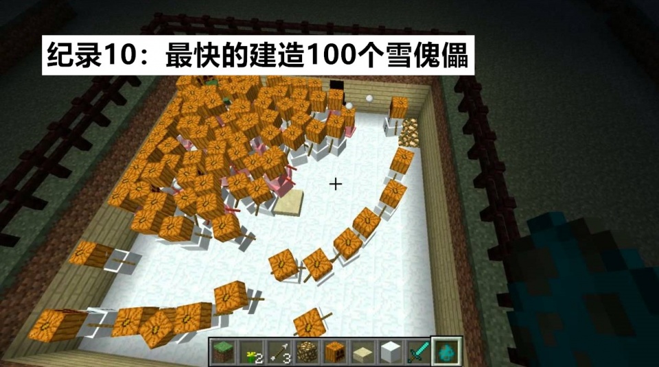 倘若给你100个南瓜,200个雪块。你最快能以多长时间造出“100个雪傀儡”?目前世界纪录的保持者是著名的Youtuber Ashley,时间为1分46.246秒。