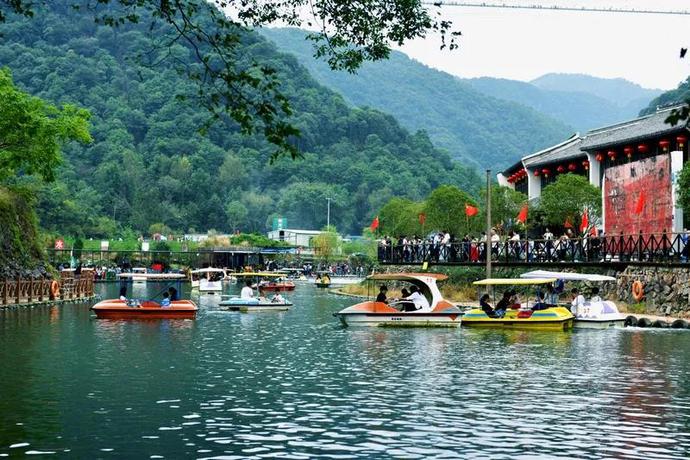 横渡潘家小镇位于三门最高峰湫水山的腹地,生态养生、乡村风情、农家美食是潘家小镇乡村旅游的“吉祥三宝”。今年,位于情人谷的玻璃景观悬索桥,成了游客趋之若鹜的打卡点。