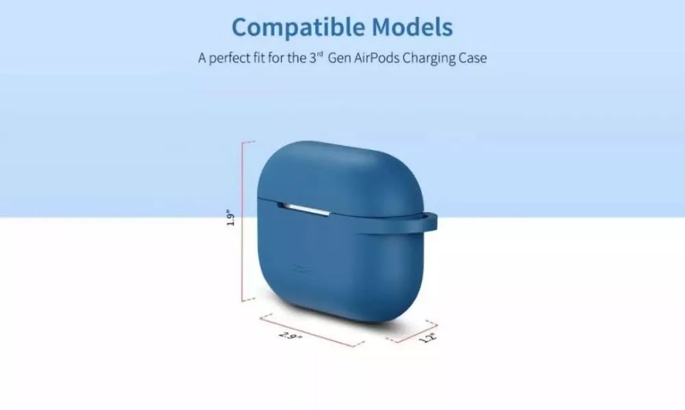 此外,因为耳机造型,AirPods 的充电盒也在横向变宽,正面依旧保留指示灯,用以显示无线充电状态。而近期亚马逊购物网站上出现的 AirPods 耳机盒保护套也从侧面证明了这个造型。