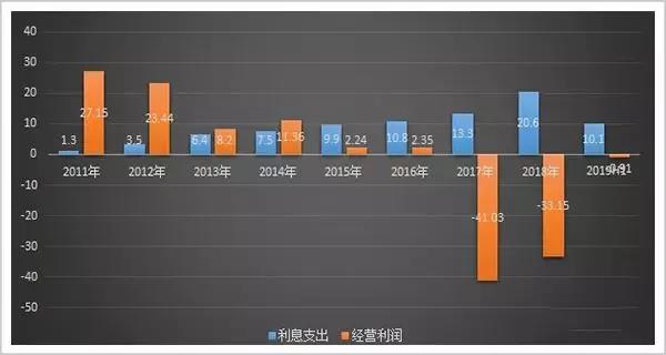 不仅如此,数百亿元的项目贷款每年还会带来巨额的财务成本,不断侵蚀公司主营业务的利润。2018年,公司财务费用高达20.6亿元。而*ST盐湖上市以来最高年利润才27亿元。