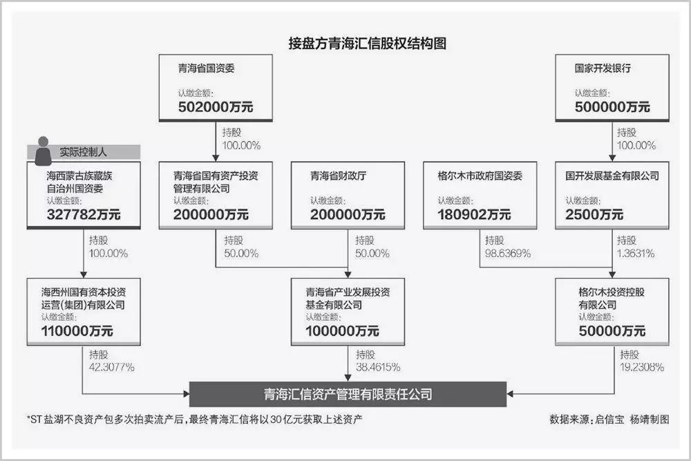 历经6次打折促销,*ST盐湖不良资产包从原价254.27亿元降至29.9亿元,仍无人问津,最终由海西国资委控股、青海省国资委参股的青海汇信资产管理公司以30亿元的价格“兜底”受让。